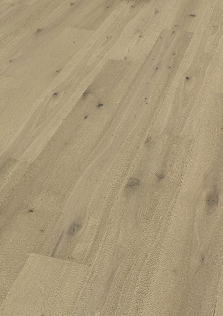 Wie ein Spaziergang durch die warmen Steinfarben Baths – elegant, ruhig, mit Charakter. Die leicht geräucherte, weiß naturgeölte Oberfläche in natürlichem beige der Eiche strahlt zeitlose Gelassenheit aus. In der Mitte dieser Harmonie: die Landhausdiele
