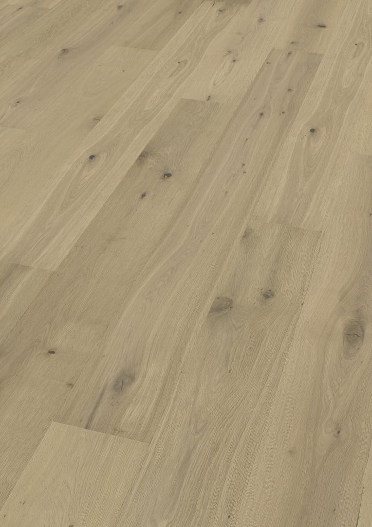 Like a walk through the warm stone colours of Bath - elegant, calm, characterful. The lighly smoked, white natural oiled surface in the natural beige colour of oak exudes timeless serenity. In the middle of all this harmony: The Oak No. 26 – Bath plank. With a surface that is brushed and typically knotty the effect is lively and authentic A heritage classic from the collection Britian's Finest - with a keen sense of British understatement.