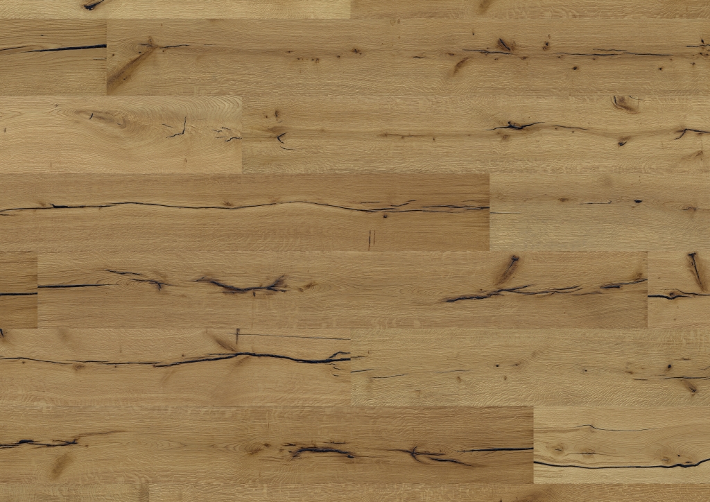 Nichts für Zaghafte. Dieser Boden fordert Charakter – und bringt ihn mit. Die tiefe Bürstung, durchzogen von markanten Sägemarken, die wie alte Narben wirken: Spuren des Handwerks, die nicht kaschieren, sondern betonen. So roh, so echt. Inspiriert